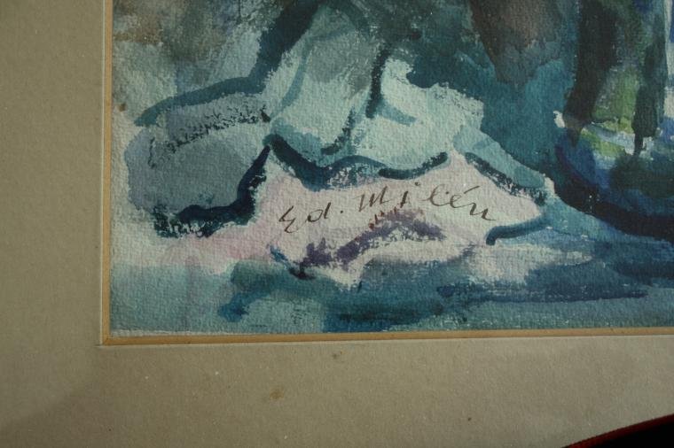 Popis stavu obrazu a rámu:zaskleno, uloženo u ČFVU - zadní razítko