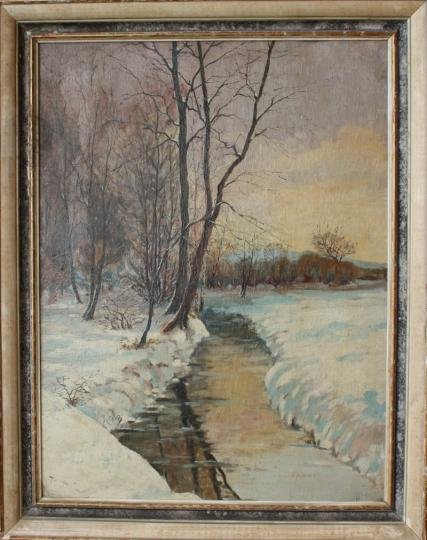 Koupit dílo "Večerní zasněžená říčka u lesa" (neevidován neevidován)